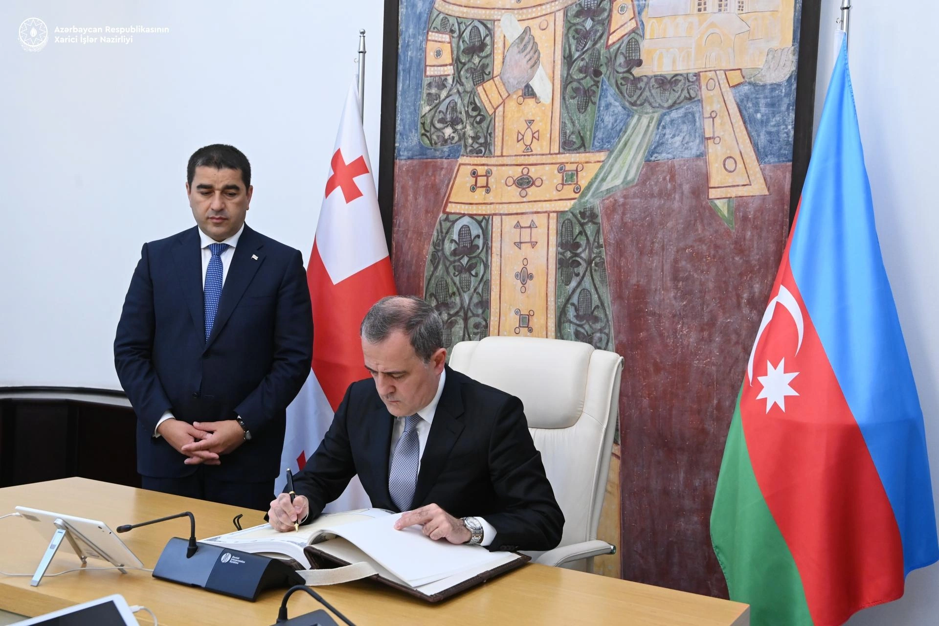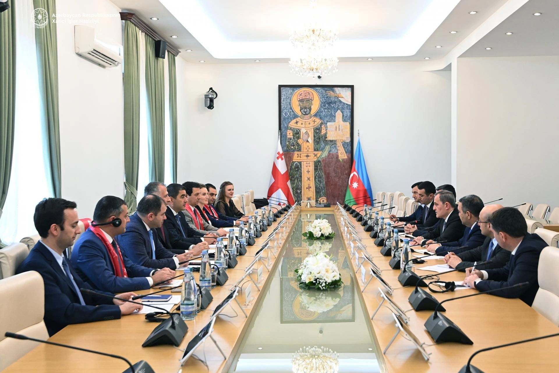 Azərbaycanın xarici işlər naziri Ceyhun Bayramov Gürcüstana rəsmi səfəri çərçivəsində bu ölkənin Parlamentinin sədri Şalva Papuaşvili ilə görüşüb. Bu barədə Bizim.Media-ya Azərbaycan Xarici İşlər Nazirliyindən bildirilib. Bildirilib ki, görüş zamanı Azərbaycan və Gürcüstan arasında strateji tərəfdaşlıq gündəliyində duran məsələlər, parlamentlərarası əməkdaşlığın perspektivləri, habelə regionda cari vəziyyət müzakirə olunub. İki ölkə arasında iqtisadiyyat, ticarət, investisiyalar, energetika, nəqliyyat və kommunikasiyalar, humanitar və s. istiqamətlər üzrə strateji tərəfdaşlıq xarakteri daşıyan qarşılıqlı faydalı əməkdaşlığın məmnunluq doğurduğu diqqətə çatdırılıb. “Orta Dəhliz” üzrə işlərin və birgə əməkdaşlığın əhəmiyyəti qeyd edilib. Bununla yanaşı, Azərbaycan-Gürcüstan-Türkiyə arasında həm xarici işlər nazirləri, həm də parlamentlər səviyyəsində üçtərəfli format çərçivəsində birgə səylərin genişlənməsinin vacibliyi vurğulanıb. Nazir ölkələr arasında mövcud çoxşahəli əməkdaşlıq gündəliyinin inkişafında parlament diplomatiyasının, parlament sədrləri və nümayəndələrinin qarşılıqlı səfərlərinin, dostluq qrupları arasında geniş əməkdaşlığın əhəmiyyətli rol oynadığını qeyd edib. İki ölkənin qanunverici orqanları arasında əməkdaşlığın xalqlarımız arasında mövcud dostluq və mehriban qonşuluq münasibətlərinə verdiyi töhfə müsbət qiymətləndirilib. Cari ildə ölkəmizdə keçiriləcək BMT-nin İqlim Dəyişikliyi üzrə Çərçivə Konvensiyasının Tərəflər Konfransının 29-cu sessiyasına (COP29) hazırlıq işləri barədə məlumat verən nazir Ceyhun Bayramov, COP29 çərçivəsində əməkdaşlığın daha da genişləndirilməsi üçün yeni imkanların yarandığını diqqətə çatdırıb. Qarşı tərəf, həmçinin postmünaqişə dövründə bölgədə mövcud vəziyyət və reallıqlar, işğaldan azad olunmuş ərazilərdə aparılan genişmiqyaslı bərpa və quruculuq işləri, mina təhdidi ilə mübarizə səyləri, habelə Azərbaycan və Ermənistan arasında sülh və normallaşma prosesi barədə məlumatlandırılıb. Görüşdə, həmçinin qarşılıqlı maraq doğuran digər məsələlər ətrafında fikir mübadiləsi aparılıb. Nazir Ceyhun Bayramov həmçinin Parlamentin fəxri qonaqları kitabına ürək sözlərini yazıb. Bizim.Media