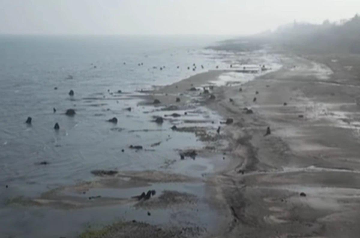 Xəzər dənizinin suyunun geri çəkilməsi və səviyyəsinin azalması maraqlı mənzərə yaradıb. Bizim.Media xəbər verir ki, dənizdə iri qayalıqları xatırladan bu çıxıntılar əslində ağac kökləri və gövdələrin qalıqlarıdır. Lənkəran yaxınlığında kəndlərin birinin sahillərində yerləşən ərazi ehtimal olunur ki, qədim zamanlarda sıx meşə olub. Dəniz geri çəkildikdən sonra açılan bu mənzərə isə həmin meşənin qalıqları hesab edilir. Həmçinin, mütəxəssislər bildirirlər ki, Xəzər geri çəkiləndə suyun altından müxtəlif dəmir parçaları da çıxır. Daha ətraflı Azərbaycan Dövlət Televiziyasının (AzTV) videomaterialında: Bizim.Media